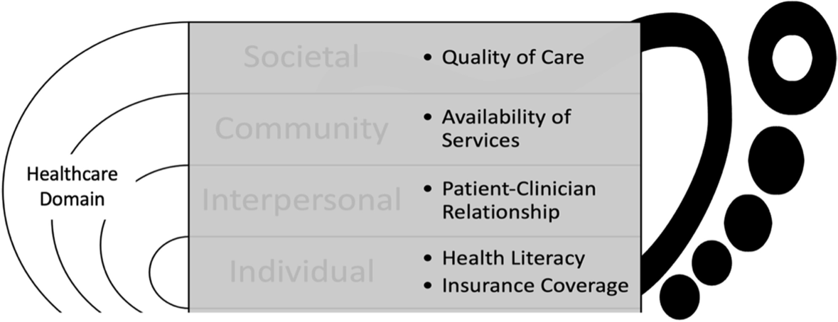 On the individual level, themes that arose included health literacy and inadequate insurance coverage resulting in financial strain. On the interpersonal level, participants complained of fragmented relationships with providers and experienced challenges in making follow-up appointments. On the community level, participants reported struggles with medical equipment.