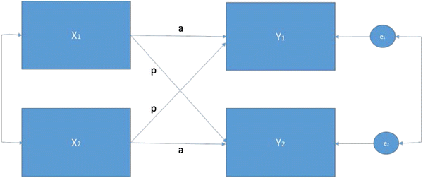 To test the study hypotheses, we used the actor-partner interdependence model (APIM; see Fig. 1) [36]. The APIM takes into account, and also tests for, interdependence by considering actor and partner effects in the same analysis, as well as considering person-to-person and dyad-to-dyad variation [36]. The APIM enables consideration of both the effect of a variable on the individual’s and their dyad partner’s outcome simultaneously. Specifically, the partner effects in the APIM indicate an interpersonal effect (i.e. an association between an individual’s characteristics and the dyad partner’s outcome). Actor effects indicate an effect of an independent variable on the same individual’s dependent variable. In addition, both within- and between-dyad variation in independent variables were considered. The random effects (level 2) are taken to be an indicator of unobserved mutual interdependence specifically, although we cannot rule out that random effects could be caused by unobserved non-independence more generally.