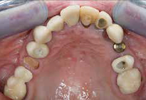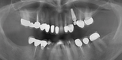 Een 72-jarige dame meldt zich op verzoek van haar tandarts voor een specifiek consult. Zij heeft in de bovenkaak twee problemen: