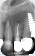 Het implantaat dat geplaatst is in het tweede kwadrant staat volgens de verwijzer niet goed in de boog. Er is geen ruimte om een kroon op dit implantaat te plaatsen zonder de kronen op 23 en 25 te beschadigen (afbeelding4).