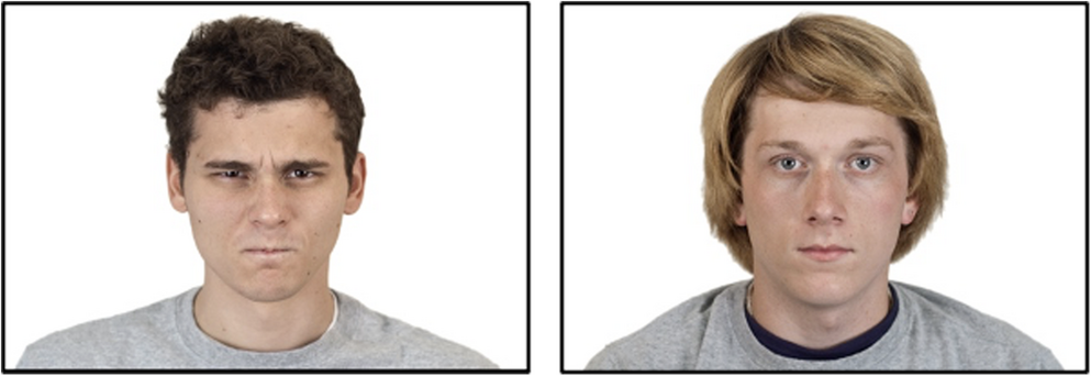 Pictures of action performers, negative expressers (i.e., individuals showing angry facial expressions) and neutral expressers (i.e., individuals showing neutral facial expressions) were retrieved from the Chicago face database (https://www.chicagofaces.org) (Ma et al., 2015) (Fig. 1). 240 different individuals were selected from the database (160 action performers, and 80 expressers displaying negative reactions and 80 expressers displaying neutral reactions), for a total of 320 pictures (size: 295 × 211px), evenly split by gender and ethnicity (“black” and “white”, as categorized in the database).