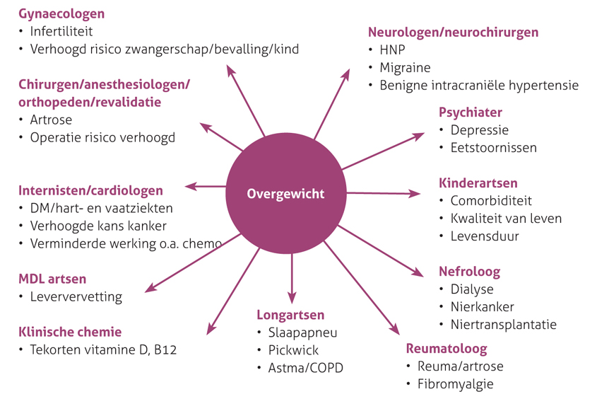 Volgens de definitie van de World Health Organisation (WHO) is obesitas een chronische ziekte. Niet iedereen is het daar mee eens. Er is voldoende evidence om aan te tonen dat obesitas een risicofactor is voor diverse aandoeningen waar u als huisarts dagelijks mee te maken heeft. Risicofactoren als hypertensie, diabetes mellitis type 2, hart- en vaatziekten, slaapapnoesyndroom (OSAS), artrose en het polycysteusovariumsyndroom (PCOS). Ook de rol van obesitas als risicofactor voor kanker (darm, slokdarm, alvleesklier, nier, baarmoeder, borst, eierstok en galblaas en prostaat) wordt steeds duidelijker in wetenschappelijk onderzoek.