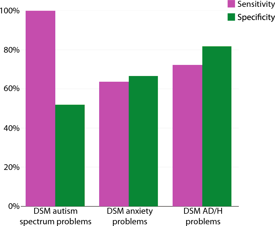 Sensitivity and specificity metrics for the preschool CBCL autism spectrum problems scale and the CBCL/ABCL anxiety problems and attention-deficit/hyperactivity problems scales. AD/H attention-deficit/hyperactivity