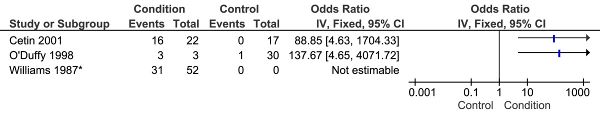 Forest plot of studies reporting increased subcalcaneal radioisotope uptake. *Control group sample size not reported.