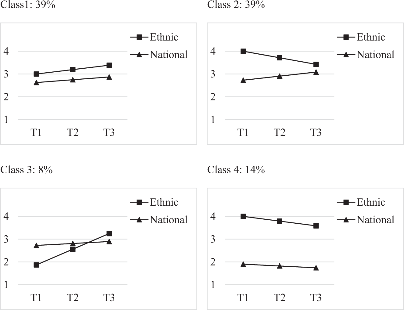 This study further adds to the literature on ethnic-racial identity development in at least two ways. First, considerable developmental variability over time was uncovered. Previous longitudinal studies indicated that ethnic identities are stable during late adolescence (Birman and Trickett 2001; Kiang et al. 2013; Pahl and Way 2006). On a sample-averaged level, the findings accord with this view. However, on an individual level, ethnic identities were not stable – they increased, sharply increased, or decreased. This pattern highlights that older adolescents are still actively engaged in a dynamic process of ethnic identity development. Second, adolescents’ national identity was included as an important related aspect of the self with implications for minority group members’ adjustment (Berry 1997; Phinney et al. 2001).