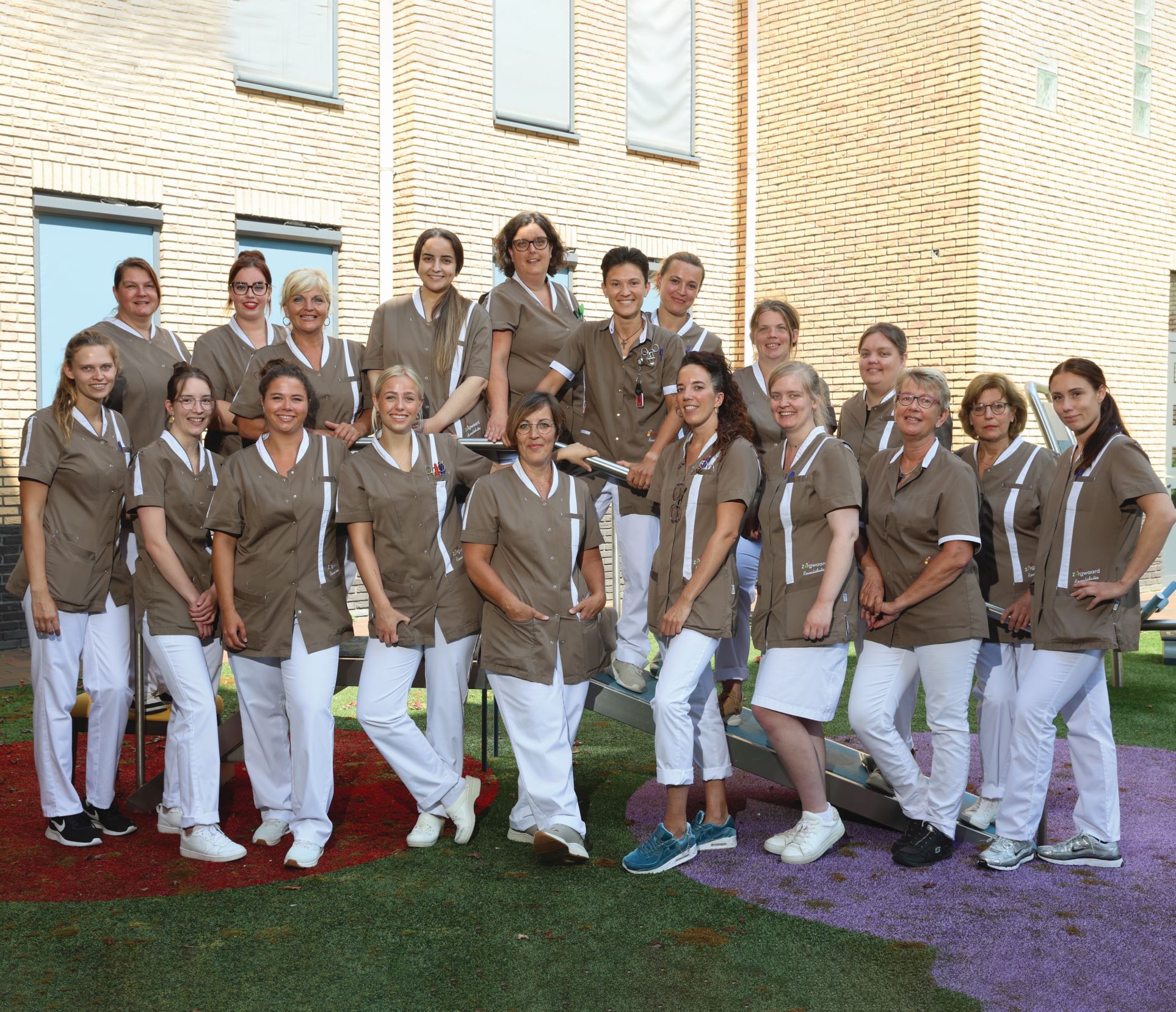 Team: Afdeling Anton Mauve van de Geriatrische Revalidatiezorg van Zorgwaard in Oud-Beijerland. Samenstelling: 9 verzorgden-IG, 24 mbo- en hbo-verpleegkundigen, medewerkers voedingsdienst, huishouding, poolers en medisch secretaresses. Leeftijd: 19-65 jaar