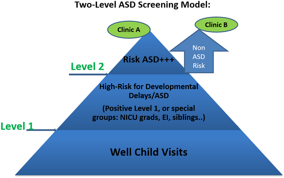 In our clinical center, the average wait time for a toddler aged 18–36 months referred for evaluation because of concerns of ASD, varies between 3 and 5 months with an average wait of 4 months or 16 weeks. To improve access and early identification of ASD in our culturally diverse community, we implemented and assessed a clinical approach that utilizes a two-level ASD screening model, in combination with a close partnership with the largest Early Intervention (EI) program in our region.