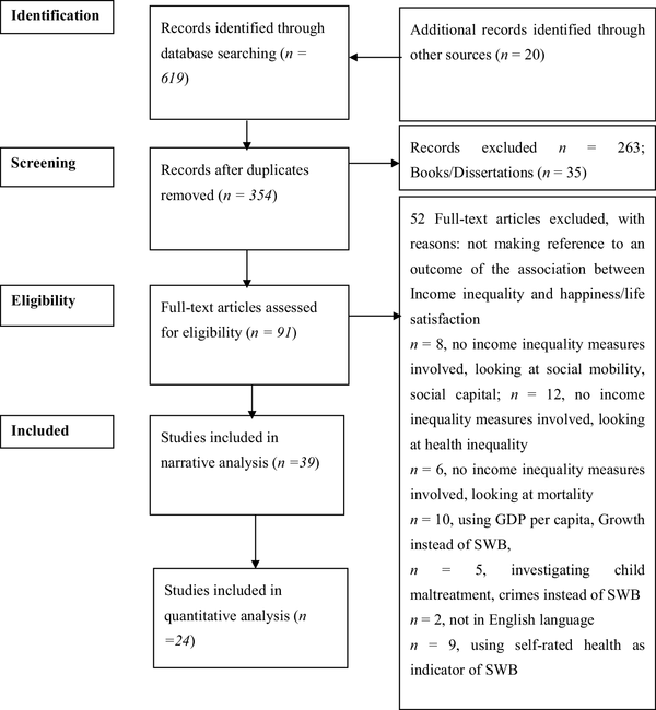 The narrative synthesis of all 39 eligible studies focused on the way SWB is assessed, country level of development, geographic region and the way income inequality was operationalised.