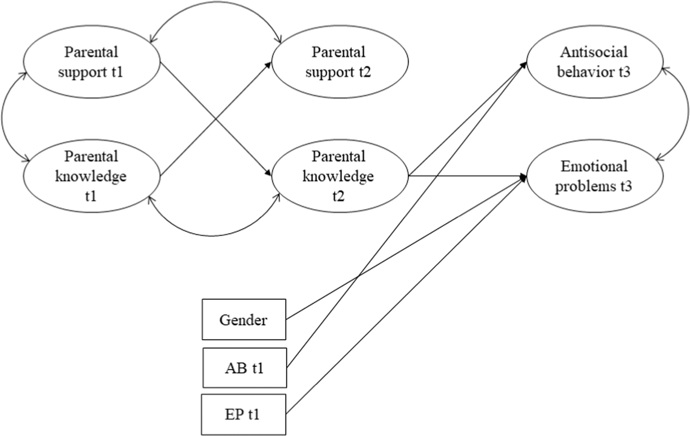 Note. Gender was coded as 0-male, 1-female. AB = antisocial behavior. EP = emotional problems. Support = parental support. Knowledge = parental knowledge