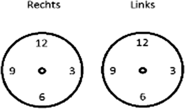 Voor een goede correlatie van klinische gegevens en de beeldvorming is een duidelijke aanvraag belangrijk. Beschrijf de aard van de klacht en in welk kwadrant deze zich bevindt, eventueel kloksgewijs (fig. 6). Verder kan worden vermeld hoe lang de klacht bestaat, de voorgeschiedenis van de patiënt en de familieanamnese (mammacarcinoom, ovariumcarcinoom).