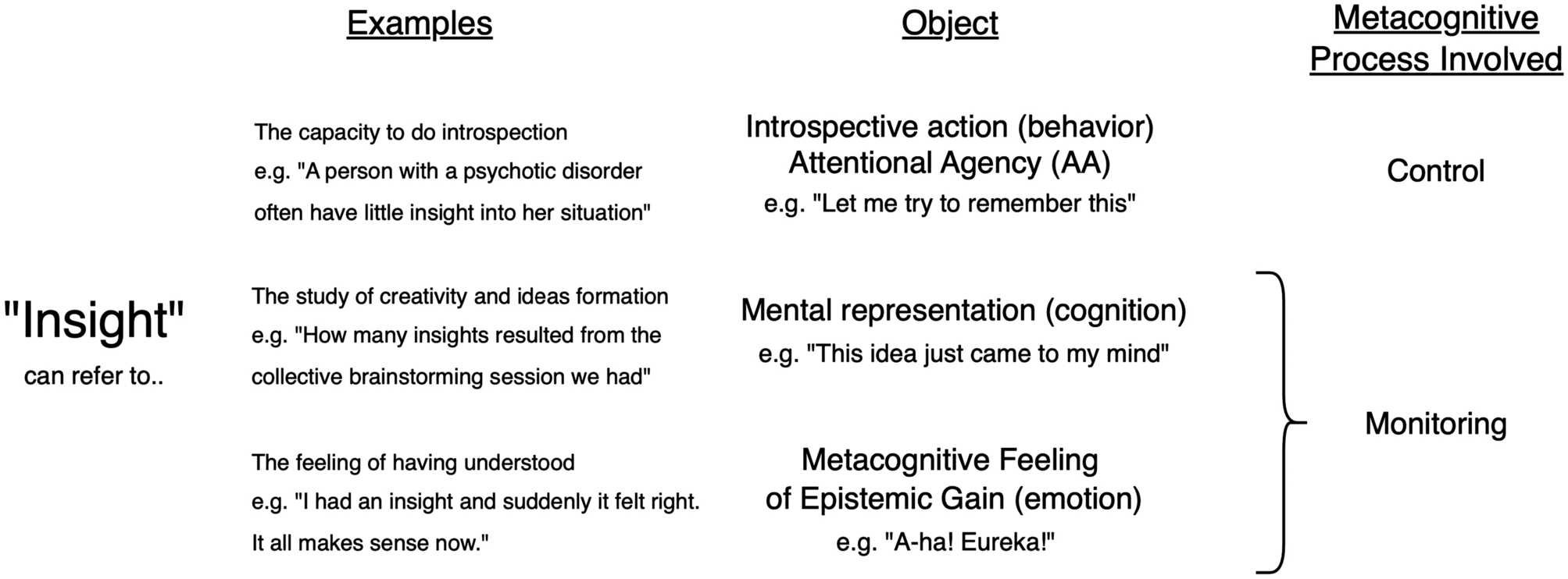 The term "insight" can refer to both control and monitoring metacognitive processes