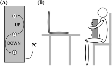 a Schema of the keyboard of vertically arranged keys used in the experiment. b Schema of the posture of the participant