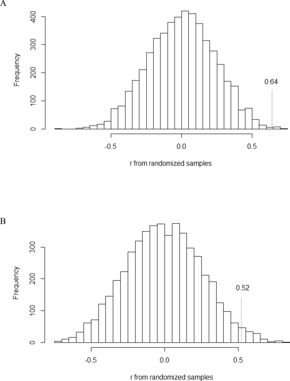 For mother–child ASD dyads, response latencies for wave D (r = 0.52, p = 0.04, probability rtrue > rrandom = 97.8%; i.e., the likelihood that the correlation coefficient derived from the mother–child dyad correlation (rtrue) is greater than the correlation coefficients derived from all permutations of the unrelated parent–child pairs (rrandom) is 97.8%) and prestimulus noise (r = 0.52, p = 0.04, probability rtrue > rrandom = 97.7%) were positively correlated. Further, negative correlations emerged for pitch error (r = −0.72, p < 0.01, probability rtrue < rrandom = 99.8%; i.e. the likelihood that rtrue is less than rrandom suggests that rtrue is stronger than random pairs 99.8% of the time, in the case of a negative correlation) and pitch strength (r = −0.72, p < 0.01, probability rtrue < rrandom = 99.4%).