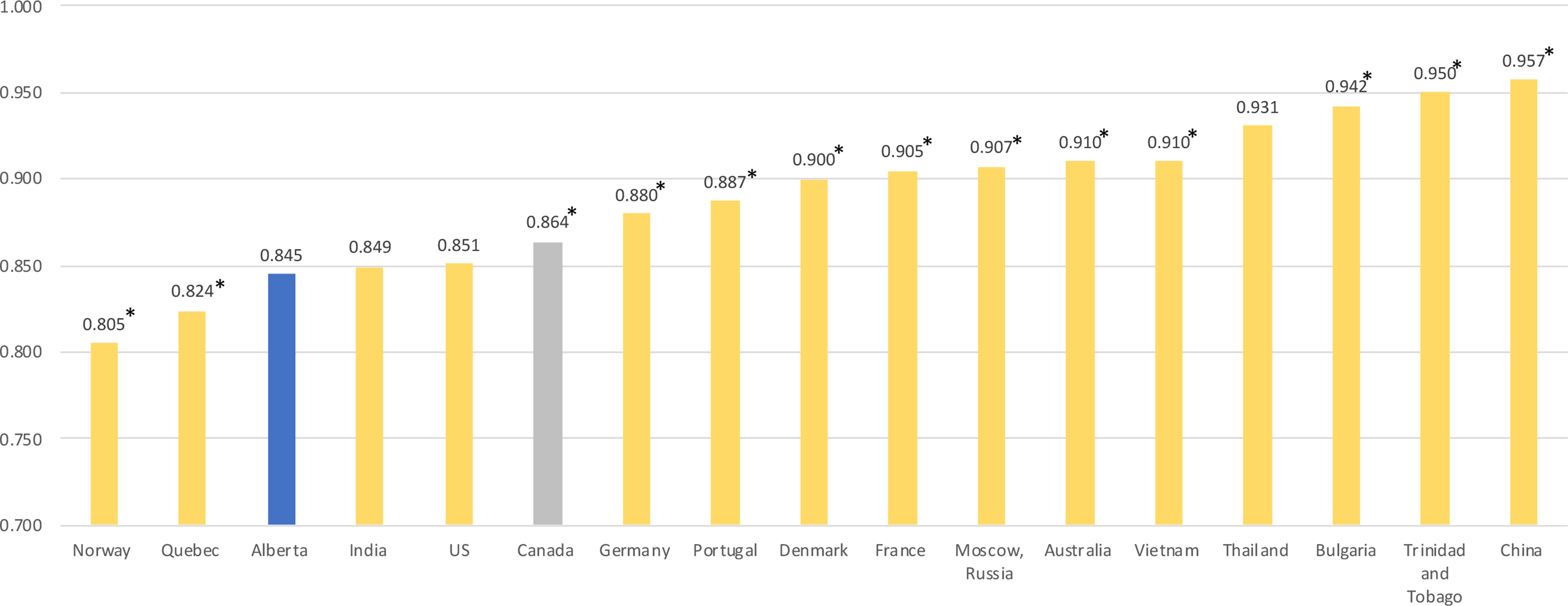 Population reference data or population norms (also referred to as normative data) have been widely used to aid the interpretation of measures like the EQ-5D. They provide baseline or reference values that can be used to benchmark patients’ outcomes, evaluate clinical programs, as well as to establish burden of illness in the general population, and to assess health inequalities [6‐12]. National population norms are increasingly available for the five level version of the EQ-5D (EQ-5D-5L) in many countries including United States [13], France [14], Germany [15], Norway [16], Denmark [17], Italy [18], Portugal [19], Bulgaria [20], Romania [21], Slovenia [22], Russia [23], Australia [24, 25], New Zealand [26], India [27], Thailand [28], Vietnam [29], Japan [30], China [31], Colombia [32], Uruguay [33], Belize [34], and Trinidad and Tobago [35]. In Canada, population norms for the EQ-5D-5L are available at a national level [36], and for the province of Quebec only [37].
