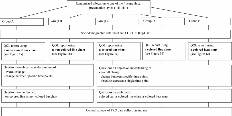 Given the paucity of studies on the graphical presentation of individual-level PRO results, the aim of the current study was to investigate patients’ and health professionals’ understanding of and preferences for different graphical presentation styles for the EORTC QLQ-C30, a questionnaire frequently used to assess QoL in cancer patients [15]. In addition, we asked patients and health professionals their opinions about general aspects of PRO data collection and use in daily clinical practice.
