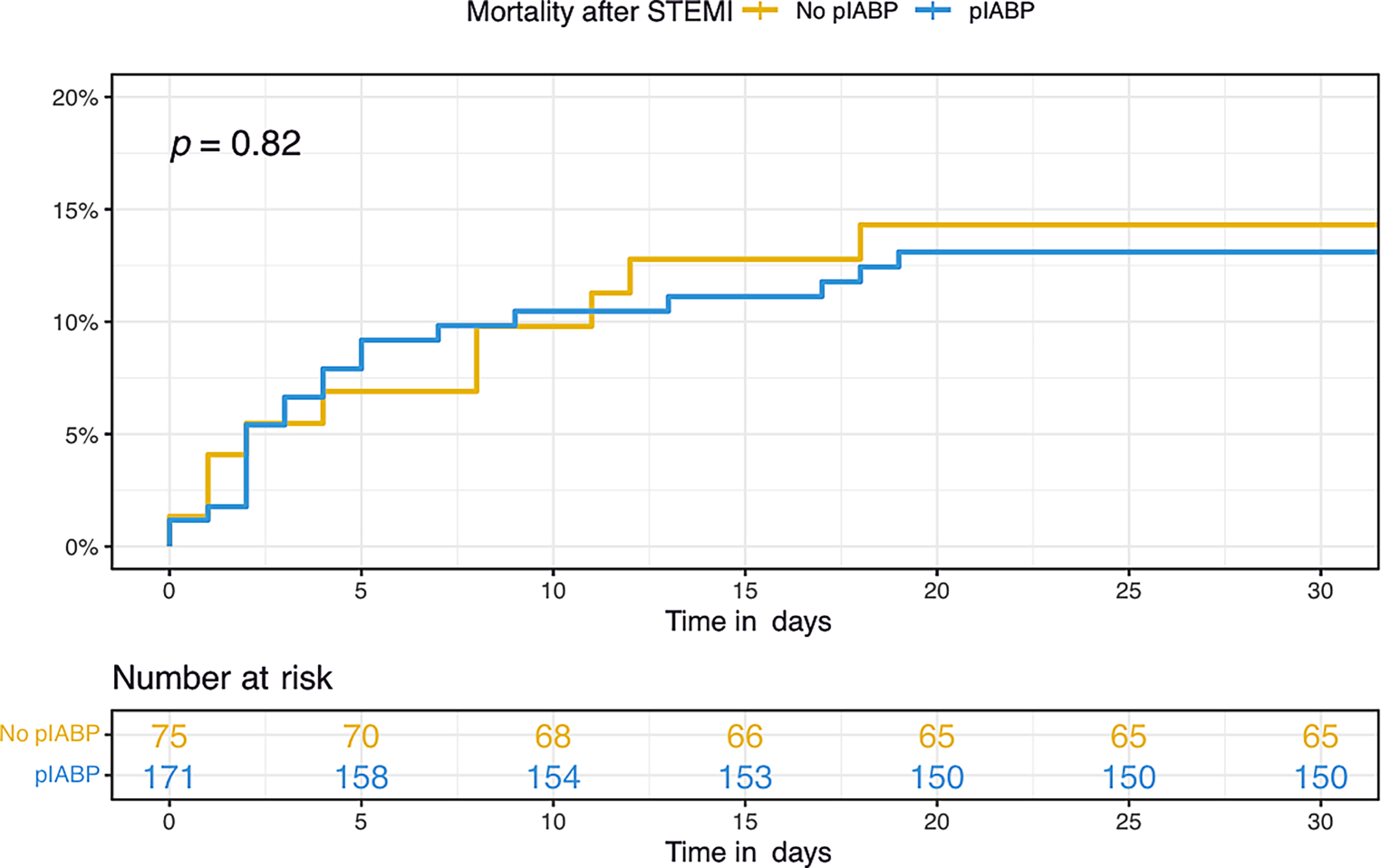 In patients with persisting or ongoing ischaemia, an IABP can be inserted as a bridge-to-CABG, although robust evidence is lacking. Unsuccessful PCI in STEMI is associated with higher mortality than STEMI with successful PCI, especially in patients with CS [18, 19]. In previous retrospective studies, IABP use in patients with PI after primary PCI was associated with reduced mortality [19, 20]. However, more recently, IABP insertion did not reduce mortality in patients with large anterior STEMI and PI [21]. In our study, subgroup analysis did not demonstrate reduced mortality in patients with PI treated with a pIABP.