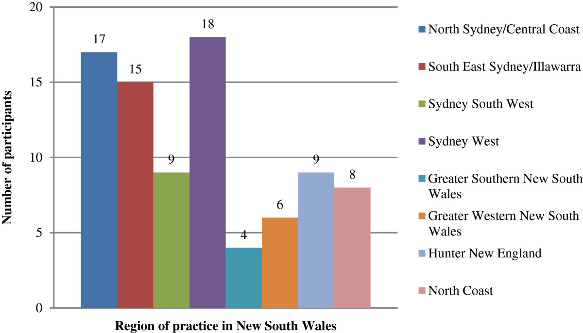 Bar chart indicating the distribution of respondents’ regions of practice in NSW.