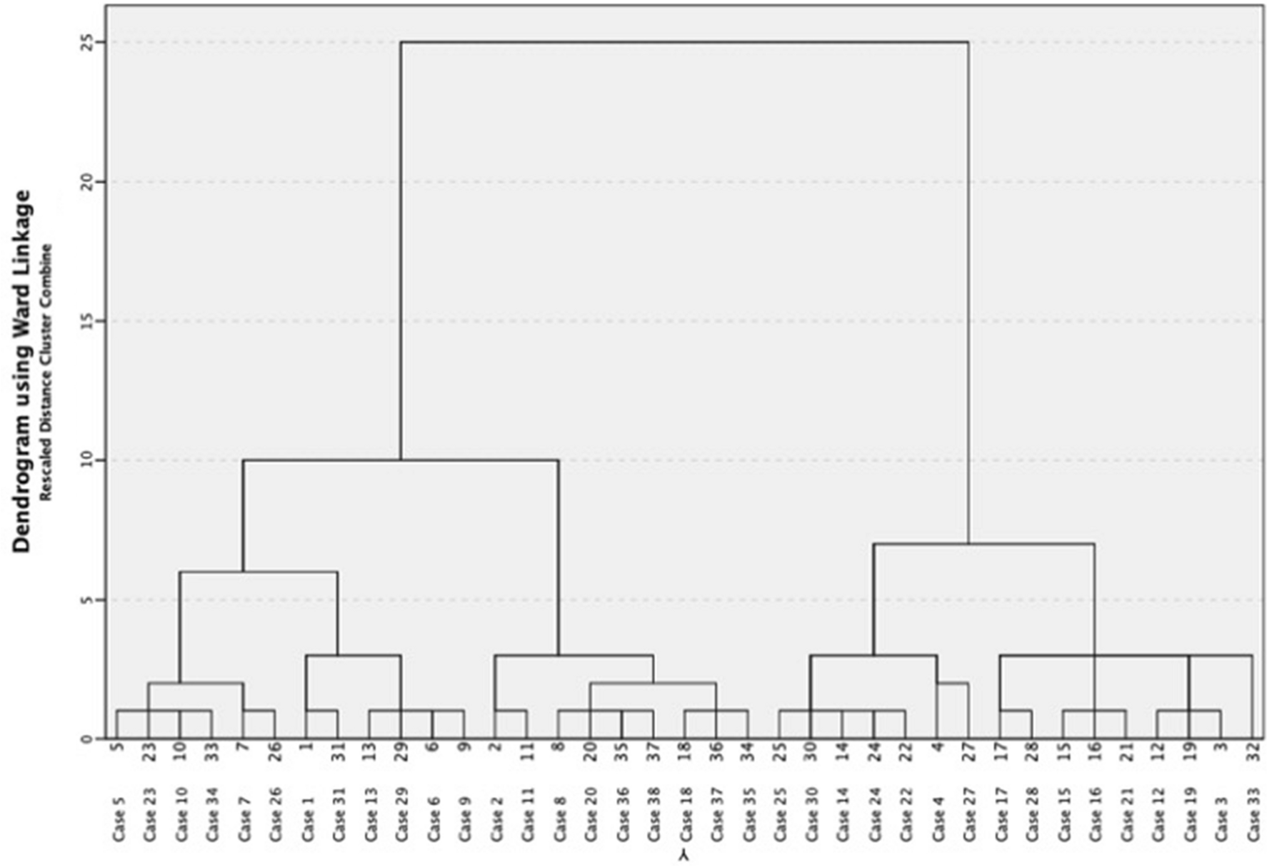 Figure 1 shows the dendrogram generated by the cluster analysis which suggested a two-cluster solution. These two clusters included a similar number of participants (see Table 2). There was no significant difference for age between the two groups, even though those in the high impairment cluster were older by 23 months on average (p > 0.05).