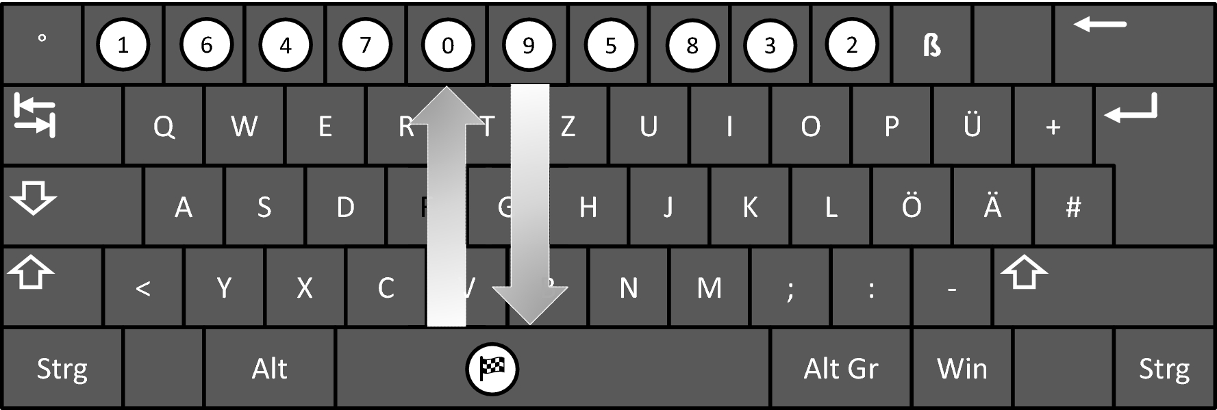 The experiment was run on participants’ personal notebooks using OpenSesame 3.24 (Mathôt Schreij & Theeuwes, 2012). The experiment file is available at https://osf.io/6f9ht/. A white label (diameter = 1 cm) with a checkered flag was put on the space bar indicating the start and end key. Further, labels with black numbers ranging from 0 to 9 (Arial 14) were put on the number keys of the keyboard (see Fig. 1). For the experimental sequences, the numbers on the labels had four possible orders: sequence A (1-6-4-7-0-9-5-8-3-2), sequence A mirrored (AM, 2-3-8-5-9-0-7-4-6-1), sequence B (5-6-3-8-0-9-4-2-1-7), and sequence B mirrored (BM, 7-1-2-4-9-0-8-3-6-5). During the experiment, participants were asked to press the keys according to the numbers in ascending order. Each sequence had the same number of direction changes and involved the same total movement distance. In control sequences, the numbers on the labels were ordered from the left to the right side (C = 0-1-2-3-4-5-6-7-8-9) or from the right to the left side (CM = 9-8-7-6-5-4-3-2-1-0). The task used in the present study has spatial and motor components. It involves both “pure” motor learning, e.g., the optimization of changes of movement direction, and “more abstract” visual-spatial learning, i.e. learning of the target sequence. Note that in this type of sequence learning, the particular order of the keys and corresponding changes in movement direction and the length of the movements are of particular importance, not so much the single key presses themselves.