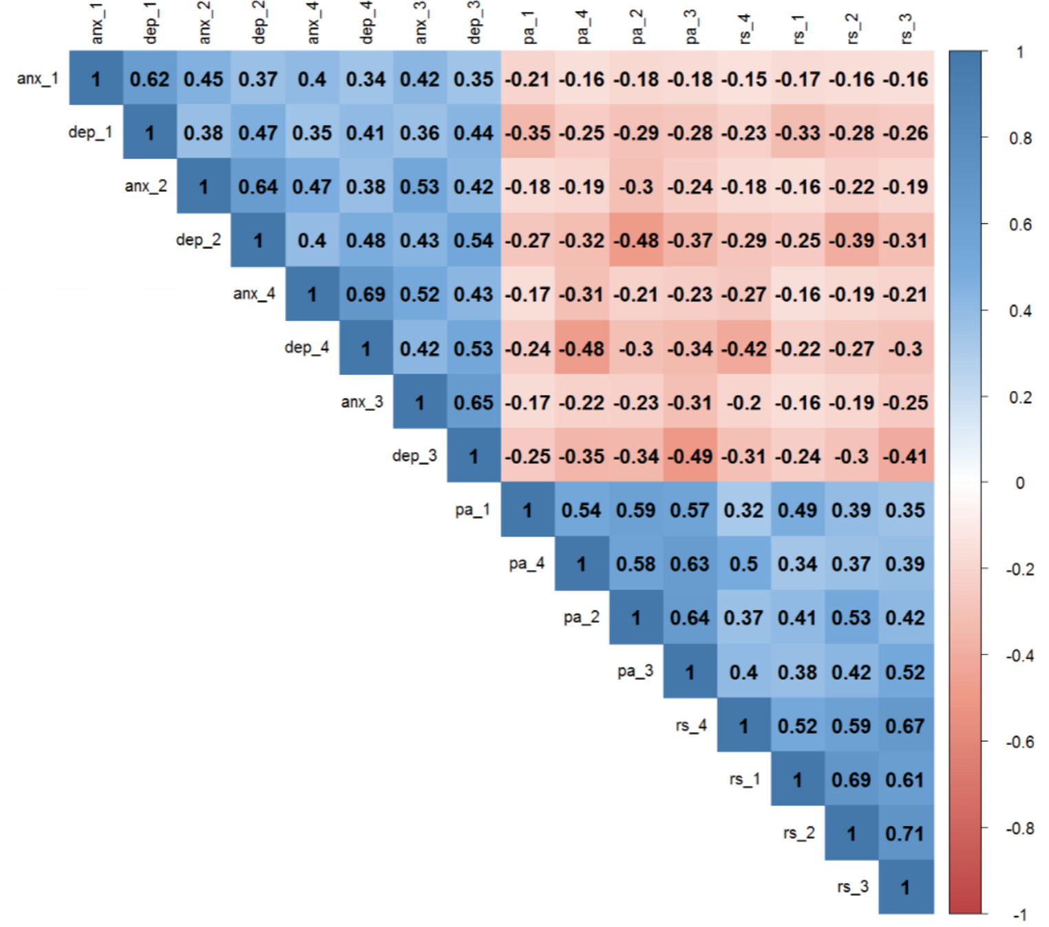Agreeing with previous literature, RelSat, PosAff, depressive and anxiety symptoms presented a moderate to high level of stability [69]. Although the correlation between RIs for depressive and anxiety symptoms was high (0.83), their correlations with the other constructs differed. Overall, the correlations for depressive symptoms were greater than the respective correlations for anxiety symptoms. This may indicate that depressive and anxiety symptoms are not as similar as previously described [70, 71] and might respond differently to a same predictor [72], especially given their association with RelSat and PosAff [73].