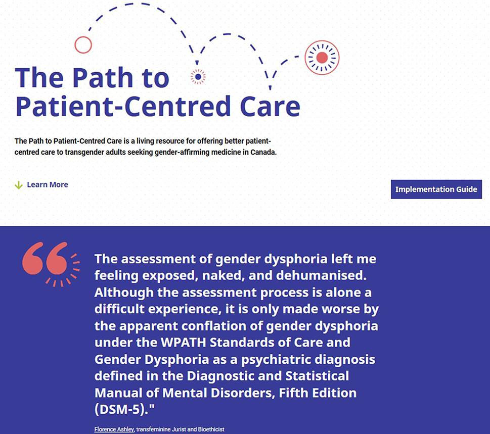 Previous research shows that when encountering problems with gender-affirming medicine protocols, clinicians have informally learned how to adapt, tailor, and work around protocols, to achieve justice and equity for trans people [7, 10]. Furthermore, content knowledge related to trans people and gender-affirming medicine is currently lacking in formal medical school, residency, and continuing professional development curricula [2‐4]. Numerous studies have shown positive associations between exposure to baseline knowledge about trans people and improvements in learners’ attitudes, yet pedagogical interventions focused on integrating advanced clinical skills are absent [4]. In this report we discuss the creation of a free online education tool designed to fill this education and clinical skills gap titled: The Path to Patient-Centred Care (PPCC) [12]. Our resource aims to teach clinicians how to offer patient-centred care to trans adults seeking gender-affirming medicine in Canada; however, its implications are relevant in all geographic locations where health professionals use the WPATH standards of care.