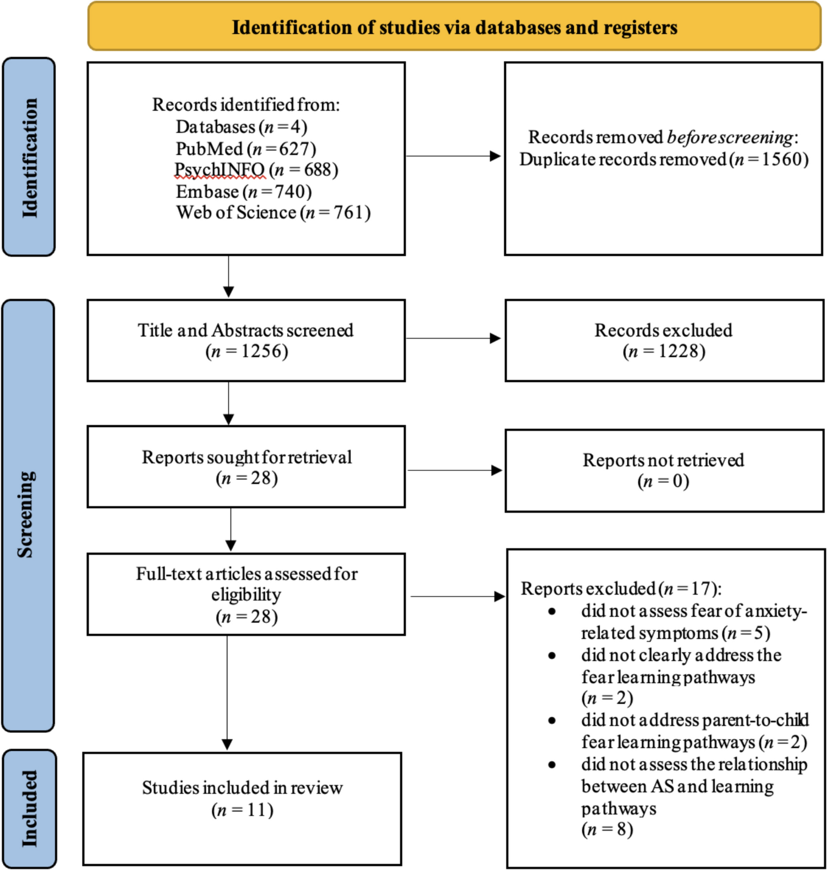 The primary aim of the present review was to synthesize and combine the available evidence from studies investigating the relationship between parent-to-child fear learning pathways and AS. By doing so, this review aims to gain an in-depth understanding of how and which fear learning pathways may be associated with these fears, which, in turn, may help inform prevention programs and improve existing treatment strategies, for example, by targeting and preventing AS in at-risk children and adolescents (Bernstein & Zvolensky, 2007; Sherman et al., 2019).