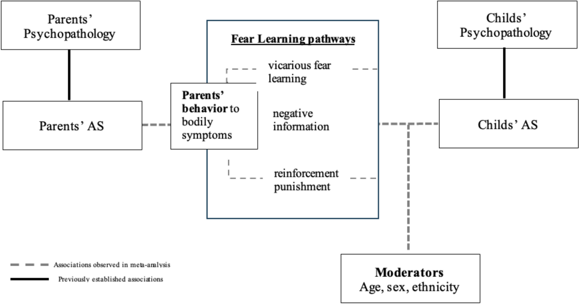 Although the included studies provide evidence that parent-to-child fear learning pathways are related to AS, the cross-sectional nature of these studies prevents conclusions about whether these pathways contribute to the onset of AS or shape its trajectory over time. If parental behaviors toward bodily symptoms, through fear learning pathways, increase offspring’s fear of these symptoms, they may also reinforce avoidance, potentially contributing to the maintenance of AS (Lebowitz et al., 2016; Bunaciu et al., 2014; Weems et al., 2002). However, given the lack of longitudinal studies, this remains a critical gap, particularly since both AS and parental behaviors have been implicated in the onset and persistence of anxiety-related symptoms.