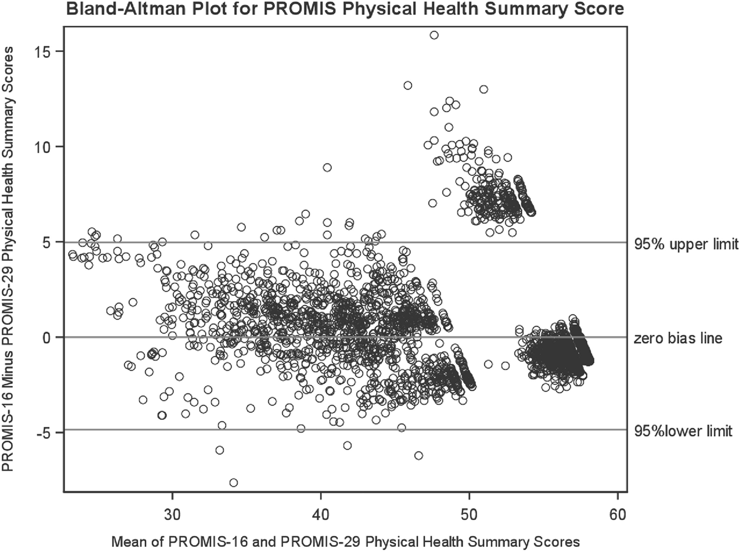 Bland–Altman Plot for PROMIS-16 Versus PROMIS-29 Estimated Physical Health Summary Score