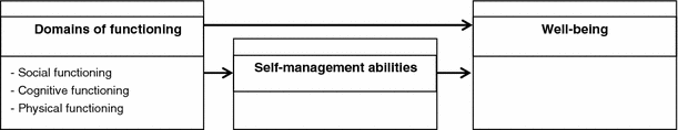 This study aimed to identify the role of social, cognitive, and physical functioning on self-management abilities and well-being among older people vulnerable to functional loss due to hospitalization. We also examined whether self-management abilities mediate the relationship between social, cognitive, and physical functioning and well-being. Our results showed that levels of social, cognitive, and physical functioning were indeed strongly related to self-management abilities. This implies that older people with low levels of social, cognitive, and physical functioning are worse self-managers than are those with higher levels of functioning. In addition, social, cognitive, and physical functioning were also strongly related to well-being. Such results align with those of previous studies, which have found that multiple domains of functioning affect well-being [38, 39]. Furthermore, this study showed the mediating role of self-management abilities in the relationship between social, cognitive, and physical functioning and well-being. Enhancing self-management abilities of at-risk older people is thus critical. Special attention may be needed for older patients reporting low levels of social, cognitive, or physical functioning who are worse self-managers than more highly functioning older people. These patients may benefit from case-management attention to enhance self-management abilities to prevent further—and hospital-induced—loss of function. We also found that whereas cognitive and physical functioning were completely mediated, social functioning was only partially mediated by self-management abilities. In part, this may be the result of the strong relationship between social functioning and well-being. A meta-analysis provided evidence to support the directional influence of social relationships on mortality [40], which may also hold for well-being. Correlational analyses indeed showed a stronger relationship between social functioning and well-being compared to the relationship between well-being, physical, and cognitive functioning. Furthermore, while physical and cognitive functioning primarily depend on the person, social functioning may also depend on the abilities of other people in one’s social network. The abilities of others may play an important role in maintaining one’s social relationships. This may explain why social functioning was only partially mediated by self-management abilities of the older persons.