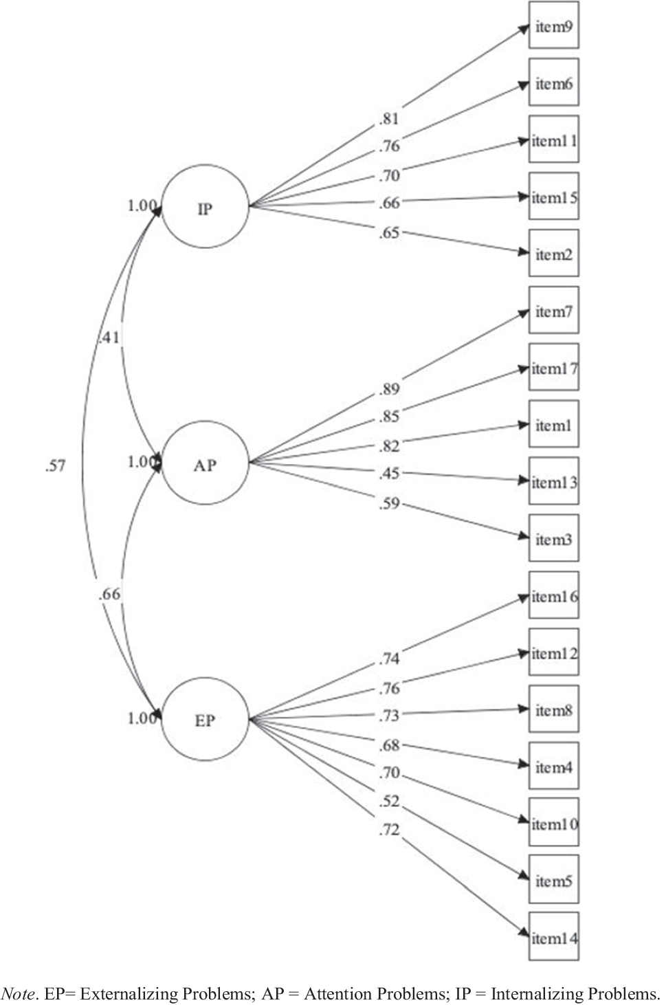 PSC-17 parent ratings were combined during three academic years (2016–17, 2017–18, 2018–19). The sample consists of 1,305 ratings of children aged from 3 to 6. The sample size is adequate based on the recommended sample size range from 300 to 460 cases, considering the number of indicators and factors, the magnitude of factor loadings, path coefficients, and the amount of missing data (Wolf et al., 2013). Institutional Review Board approval and informed consent were obtained before the data collection, and ethical treatment of subjects was followed during data collection and analysis procedures.