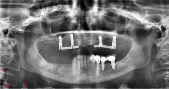 Op pagina 21 vroegen wij u naar de bijzonderheden op een postoperatieve panoramaopname (afbeelding 1 ) van een 77-jarige vrouwelijke patiënt.